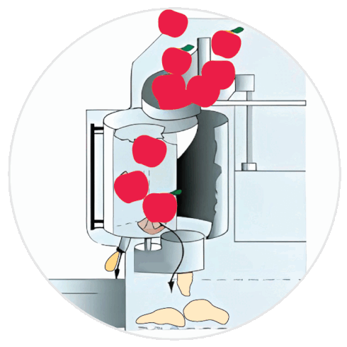 Whole fruits slide in and are pressed by our smart robotic machine