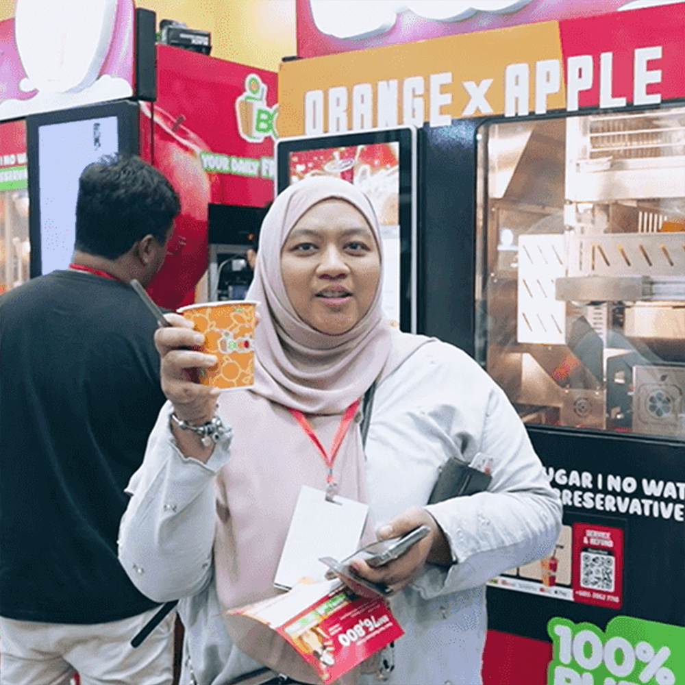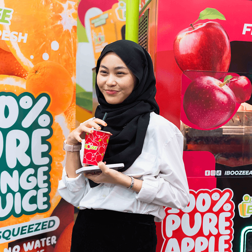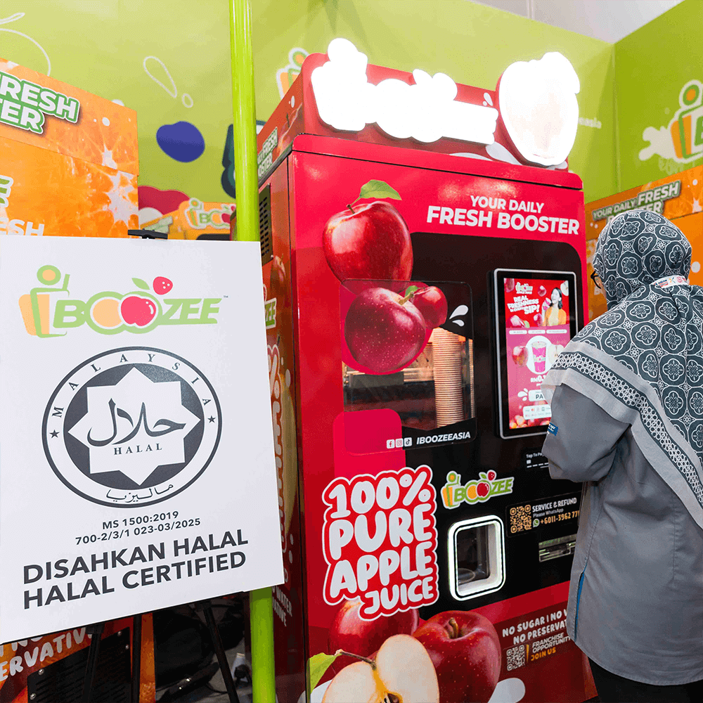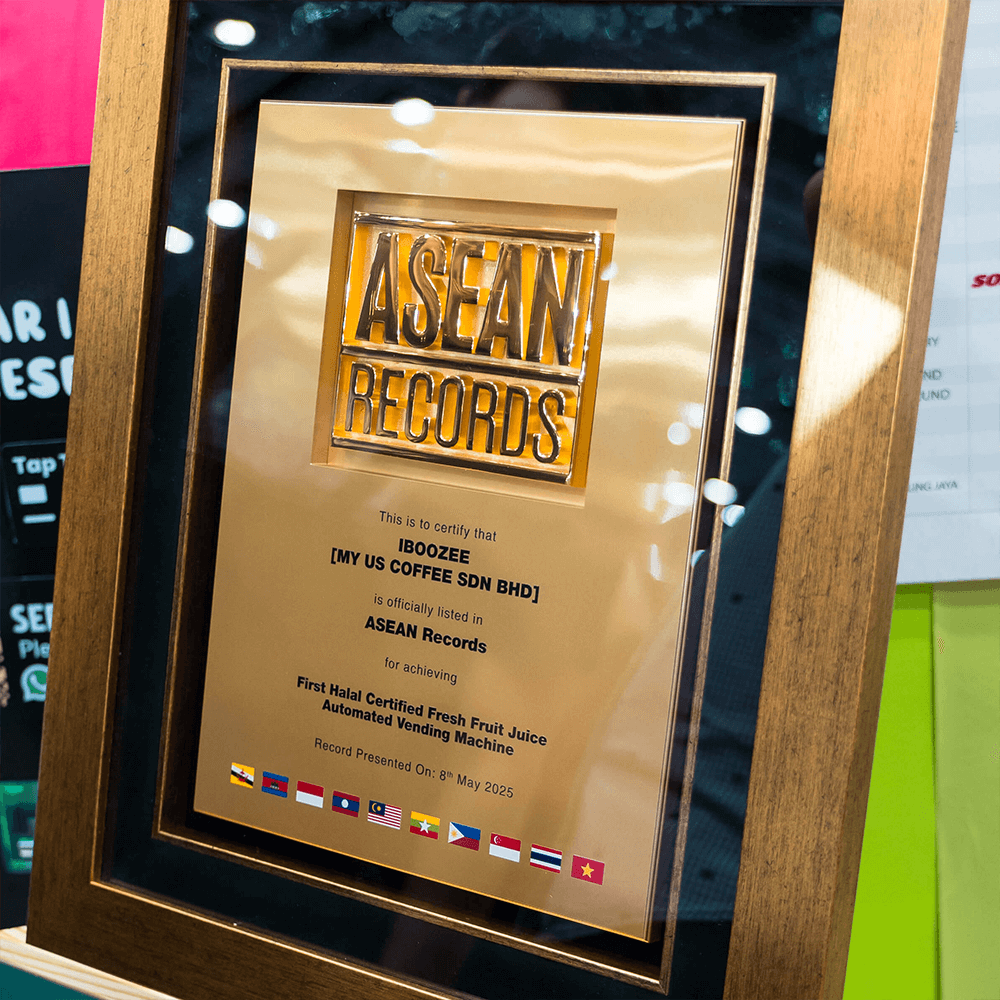 iBoozee has made a remarkable impact in the regional food tech industry by officially being recognized in the ASEAN Records for its breakthrough innovation: ASEAN’s First Halal Certified Fresh Fruit Juice Automated Vending Machine.